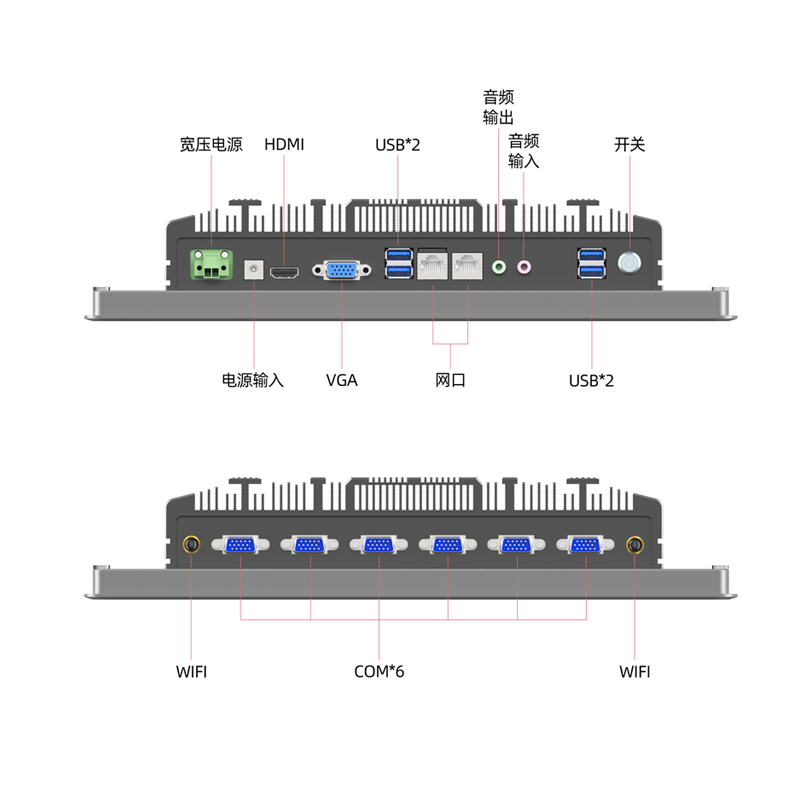 工控一體機(jī)采用【全鋁全封閉+前置按鍵】結(jié)構(gòu)設(shè)計(jì),無(wú)風(fēng)扇被動(dòng)散熱,外嵌式安裝方案。