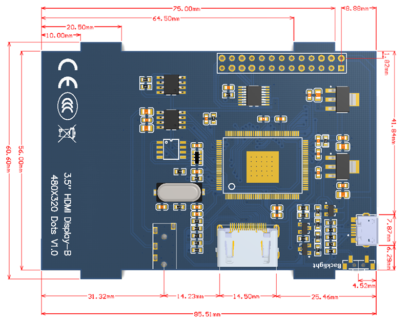樹莓派3.5寸顯示屏480*320分辯率200亮度HDMI接口帶觸摸